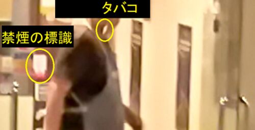 兵庫県内のレストランで、店主らしき男性が閉店後、喫煙しながら作業をしていた(2020年6月): 閉店後の喫煙店の内外をくわえタバコで行き来していた。店内に貼られた禁煙を示す標識: 禁煙ステッカーこの標識は兵庫県受動喫煙防止条例の改正前に使用されていた…